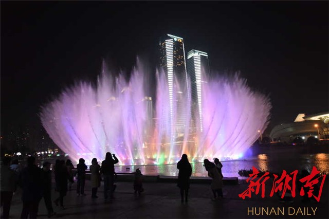 位于梅溪湖国际新城节庆岛北侧的音乐喷泉,是吸引市民的一大亮点。喷泉随着音乐的节奏律动,与绚丽的灯光变幻出迷人的水幕,斑斓的水柱如婀娜的少女摆动身姿,妩媚而温柔。晚7点半,音乐喷泉大戏准点上演,给市民带来震撼的“声光水”盛宴。63365.com客户端记者 王晗 范远志 摄影报道