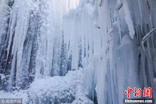10余万年岩柱林现巨大冰瀑 高度近70米