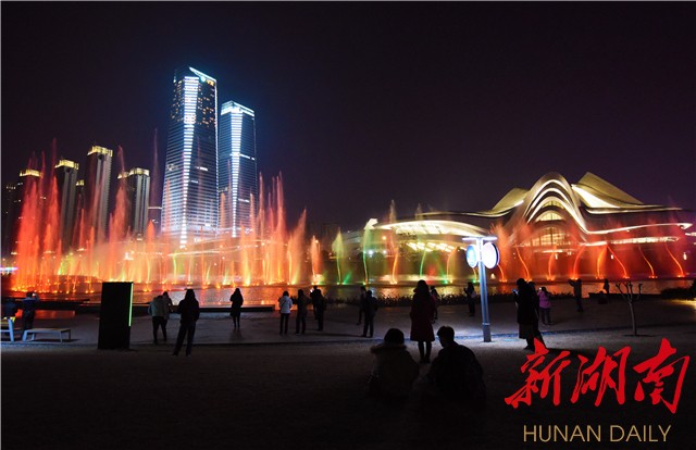 位于梅溪湖国际新城节庆岛北侧的音乐喷泉,是吸引市民的一大亮点。喷泉随着音乐的节奏律动,与绚丽的灯光变幻出迷人的水幕,斑斓的水柱如婀娜的少女摆动身姿,妩媚而温柔。晚7点半,音乐喷泉大戏准点上演,给市民带来震撼的“声光水”盛宴。63365.com客户端记者 王晗 范远志 摄影报道