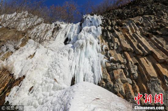 10余万年岩柱林现巨大冰瀑 高度近70米